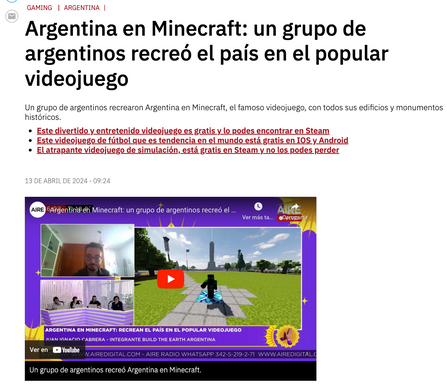 Tuve el privilegio de descubrir un proyecto increíble: un grupo de jóvenes argentinos recreando cada rincón del país en Minecraft.